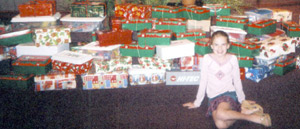 Miranda Lawhon, a GA at Old Fort Baptist Church, Summerville, sits in front of boxes collected for Samaritan’s Purse this year. The church set a record this Christmas, collecting 333 boxes for the ministry.