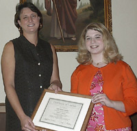 Clary Gardner, right, a junior at Furman University, was recently licensed to the ministry by First Baptist Church, York. Presenting the certificate of license is deacon chair Libby Childers. Clary’s father, Randy Gardner, is pastor of First Baptist.