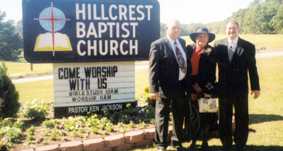 Hillcrest Baptist Church, Elgin, recently dedicated a garden around its sign. Billy and Shirley Miles, left, donated and planted the flowers. With them is pastor Ken Jackson.