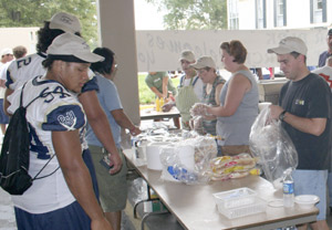 Students enjoy a hamburger cookout during opening days at Charleston Southern University. On Aug. 18 Deer Park Baptist Church and other area churches welcomed new students as they arrived on campus.Overall enrollment at Charleston Southern University is up 3.7 percent over last year, and the residence halls are at maximum capacity. The university enrollment plan is on schedule with 3,135 students in attendance. Approximately 1,200 new students representing 33 states, the District of Columbia and 11 countries began classes on Aug. 22.