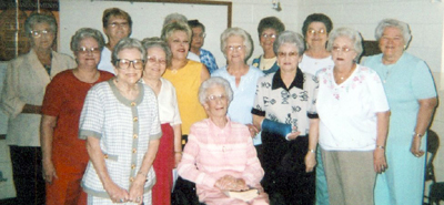 Mary Warren, seated, was honored by the Adult Ladies’ Sunday School Class of College Street Baptist Church, Newberry, during homecoming day worship Sept. 10. Warren, who taught the class for 50 years, was given a plaque renaming her former class “The Mary Warren Class.” With Warren are (l to r, front row) Frances Reed, Alice Frier, Edith Burton, Lindy Moore, Virginia Mathews, Corrie Brown, and Daphine Haltiwanger; (second row) Bonnie Burgess, Connie Teseniar, Mary Clark, Lydia Ferrell, Joan Smith, Marian Teseniar, and Mary Frances Connelly.