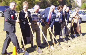 Calvary Baptist Church, Moncks Corner, celebrated its 60th anniversary Oct. 29. A groundbreaking ceremony for the new church sanctuary followed. Pictured from left are Elizabeth Bailey, wife of former pastor Ernest Bailey; Ted Fiddie, chairman of deacons; Gary Dupree, chairman of the steering committee; Mary Antley, daughter of Rufus Antley, one of the first founders; Bobby Bailey, director of missions for Screven Baptist Association; and John Jenkins Jr., pastor.