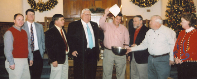 Cedar Grove Baptist Church, Conway, recently burned the mortgage on its new educational building. The $397,000 facility was paid off in less than a year, and the church is debt-free. From left are trustees Charlie Brown, Glenn Hughes and Sammy Snowden; pastor Tom Swilley; building committee chairman John Foglesonger and members Philip Edwards, Lindsey Causey and Sherry Sawyer.