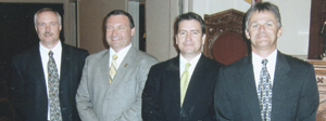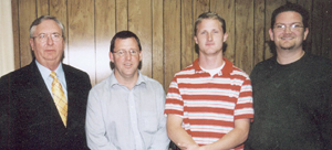 A surprise reception was held Oct. 29 to honor the pastors of Harris Baptist Church, Greenwood, and to show appreciation for their dedication and love as well as their day-to-day Christian example to the congregation and surrounding community. From left are Frank Thomas, pastor; David Clegg, associate pastor; Curt Hanna, minister of students; and Jeff Neipp, minister of preschool and children.
