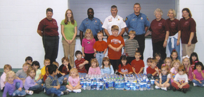 The kindergarten classes of Kelleytown Baptist Church, Hartsville, recently participated in Fire Prevention Week. The students collected more than 200 bottles of water during the week, and on Oct. 10 members of the Hartsville Fire Department presented a program about fire safety. Students got a firsthand look at the fire truck and equipment, and presented the water to the firefighters to show their appreciation for their time and the service they provide to the community. Rod Elliot is the pastor of Kelleytown.
