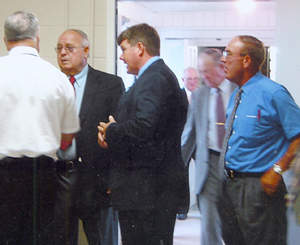 Nebo Baptist Church, Brittons Neck, celebrated homecoming Oct. 8. Richard Shaw, who was ordained by Nebo many years ago, was guest speaker. Dedication was also held for the Elaine Altman Richardson Memorial Garden. From left are interim pastor Hal Norton, Charles Richardson and Jerry Pace.