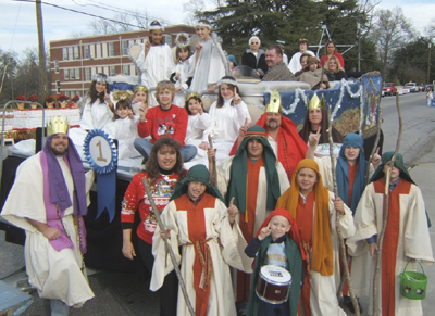 The Union County Chamber of Commerce awarded Padgett’s Creek Baptist Church, Union, the first place ribbon in the float judging for the county Christmas Parade. The float’s theme was “His destiny was to change ours.” Riding on the float were members of the choir, singing songs from the Christmas cantata, and several angels. Walking behind the float were the three wise men and the shepherds, with the little drummer boy in the lead. This year is the first time in the church’s 222-year history that it has entered a float in the parade.