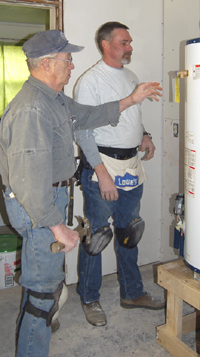Jim Grubb, right, from Freedom Fellowship Church, Greer, partnered with Ron West, another NOAH volunteer, to install a hot water heater in a home being rebuilt by NOAH. Operation NOAH is a two-year initiative by the North American Mission Board to rebuild 1,000 homes that were damaged by Hurricane Katrina.West spent 10 days in New Orleans working with Operation NOAH Rebuild, the two-year initiative of the North American Board to rebuild homes in New Orleans damaged by Hurricane Katrina. Unaccompanied by a group, West came alone to work.