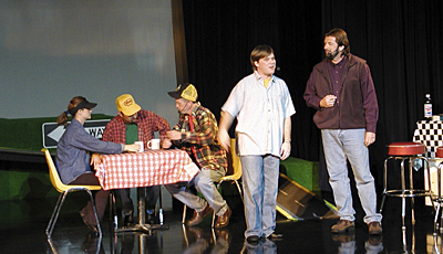 The seating area will be in dinner theatre mode April 6, 7, 13, and 14 with 6:30 p.m. shows. For the next two weekends, tables will disappear and be replaced by an additional 230 seats as the facility is reconfigured for shows without dinner on April 20, 21, 27, and 28. Shows on each of these nights will begin at 7:30 p.m., with additional 3:30 p.m. matinees on those Saturdays.