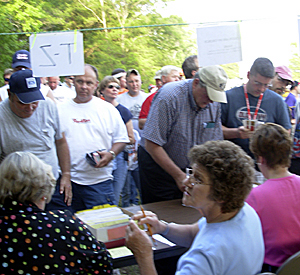 A busy registration table.