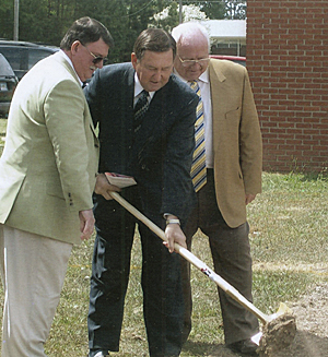 Hoffmeyer Road Baptist Church, Florence, held groundbreaking April 8 to launch a multi-phase plan which will incorporate a new fellowship hall, worship center and classroom space. Taking part in the ceremony were pastor Laneir Singleton, deacons, elders, building and planning committee, children, and church staff. Pictured above are (l to r) Yancy Wells, Singleton, and Jay Stephens.