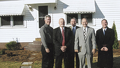 Locust Hill Baptist Church, Travelers Rest, recently purchased a home adjacent to the church to be used as a mission residence. On March 18, the newly remodeled home was dedicated. Randy Bradley and his wife, former missionaries to Argentina, are currently living in the mission house. Taking part in the dedication are (l to r) Robby Wood, deacon chairman; Gary Southern; Niki Ballew, pastor of Locust Hill; Bradley; and Ray Riley, chairman of finance ministry.