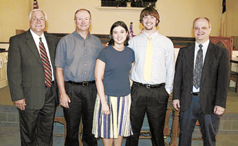 Brad Thompson was licensed to the ministry May 20 by Jonesville Baptist Church, Union County Baptist Association. Thompson will be serving Padgetts Creek Baptist Church, Union, as part-time minister of youth. From left are Ralph Brown, pastor; Vance Quinn, deacon and father-in-law of Thompson; Jessica and Brad Thompson; and Jeff Addis, chairman of deacons.