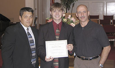 Tyler Estes was licensed to the ministry June 24 by Cross Roads Baptist Church, Greer. Tyler is a 2007 graduate of Mauldin High School and is the son of the Rev. and Mrs. Joey Estes of Mauldin. Joey Estes serves as minister of music and education at Cross Roads. From left are pastor Michael Sheehan, Tyler Estes and Greg Macdonald, chairman of deacons.