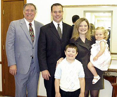 David O’Donnell was ordained to the ministry June 3 by Cavins Baptist Church, Woodruff. With O’Donnell and his family is Charles Foster, pastor of Cavins. O’Donnell has been called to pastor Mt. Calvary Baptist Church, Barnwell-Bamberg Association.