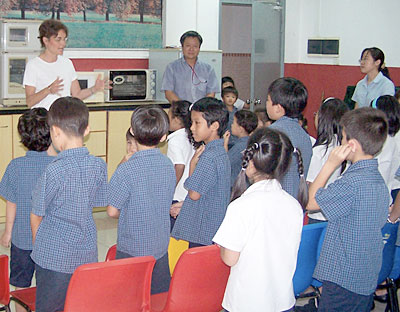 Brant teaches the song, “Let There Be Peace on Earth,” in voice and in sign language at a Chinese school.Many Bible studies are taught in the factories after work hours. There are English corners where Chinese individuals seeking to learn English come as well as teaching opportunities for ESL teachers. In Macao, a former Portuguese colony that was turned back over to China, we had the freedom to meet in churches and hand out Christian materials.