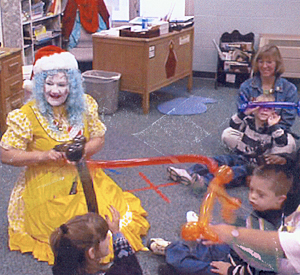 “Miss Sunshine” makes balloon animals at a special needs class.