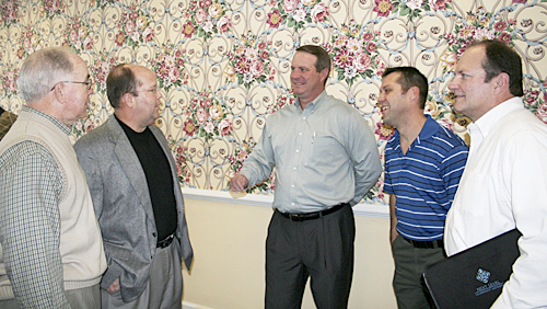Pastors from Screven and Charleston Baptist associations visit with Eddie Leopard, center, president of the South Carolina Baptist Convention. From left: Woodrow Busch, Screven Baptist Association; Al Smith, Pinecrest Baptist Church; Leopard; Tony Smith, Deer Baptist Church; and Wayne McNeill, College Park Baptist Church.