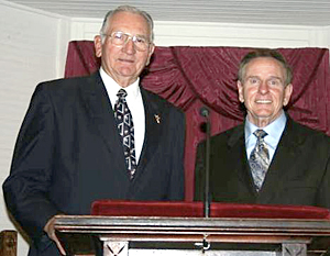 Weldon Fallaw, right, president of the Baptist Foundation of South Carolina, spoke recently at Padgett’s Creek Baptist Church, Union. With him is pastor Carrol Caldwell.