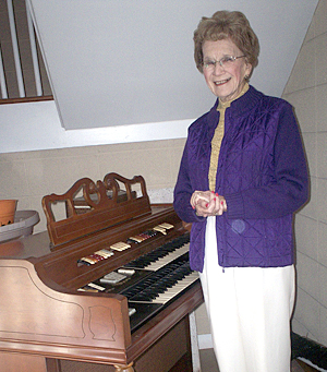 Salem Baptist Church, North, received a “double organ transplant” – the first given by Rev. and Mrs. Calvin Snelgrove, in memory of their son Doug Jr. to be used in youth ministry, and the second by Mary Ellen Bridges, pictured, to be used in sanctuary worship.