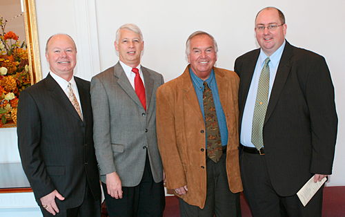 West Hartsville Baptist Church, Hartsville, celebrated Baptist Men’s Day Jan. 20. Bobby Richardson, former Yankee and World Series MVP delivered the morning message. He shared his testimony and memories of playing for the New York Yankees. From left: Walt Peterson, Baptist Men’s director; Lane Lewis, deacon chairman; Richardson; and Kevin Walters, pastor.