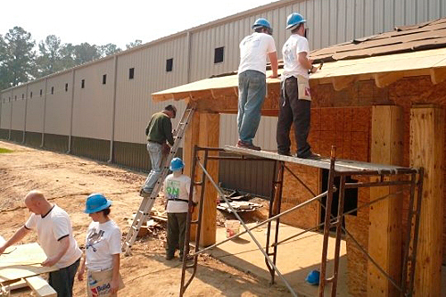 Another Catalyst project in February found 17 students laboring on a Habitat for Humanity site in Jedburg. Their goal: to complete the porch on a 23,000-square-foot ReStore facility.