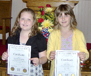 Rebekka Sheppard and Julie Roark from Antioch Baptist Church, Blacksburg, both made state winner in State Bible Drills held in April at First Baptist Church, Simpsonville. Diane Cashion is the Bible drill leader.