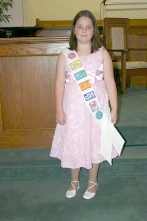 Madison Brock, daughter of Jimmy and Laverne Brock, was recently recognized for her dedication to missions at First Baptist Church, Whitmire, when she was presented her Girls in Action advancement badges. During the morning service, Madison was recognized for studying about international, North American, and state missions by praying, giving, and participating in the work of the church. One of her badges was for meeting one of several missionaries who have visited First Baptist Church. Alice Wicker and Donna Bumgarner, GA leaders, as well as her mother and father, have worked with her to help her learn scripture and study the lives of great missionaries. She and other GAs collected toys, school supplies, and toiletry items for the children in Ukraine.