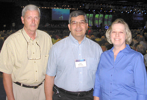 Pictured: Larry Duncan (left) and Gary and Rita McIntyre, messengers from First Baptist Church, Taylors, inside the meeting hall at the SBC annual meeting in Indianapolis. Rita McIntyre is also executive assistant at Northwood Baptist Church, Greer.
