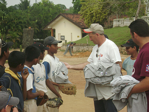 South Carolina volunteers continue to go to the far corners of South Asia, touching lives with the gospel of Jesus Christ. One group of volunteers recently held a baseball clinic in Sri Lanka. Bryan Hope of Ninety Six passes out jerseys that the volunteer’s local parks and recreation league donated. Mike McFaddin, also of Ninety Six, instructs high school baseball players on the proper technique of bunting.