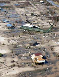 Aboard Marine One, President Bush flies over the devastation left along the Texas coast in the wake of Hurricane Ike. Bush and other officials toured the Houston-Galveston areas Tuesday for a firsthand look and to offer “heartfelt sympathies” to those who were affected.In South Carolina, for example, The State newspaper in Columbia ran a story about the South Carolina Baptist Convention deploying disaster relief teams to Texas. The newspaper said about 200 trained volunteers from the disaster relief group have been sent “to help with cleanup, serve meals, provide clean clothing and offer emotional support” to those affected by Ike.