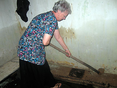 Barbara Bollman from First Baptist Church, McCormick, helps clean a home that was damaged by flooding during a volunteer trip to Sri Lanka. South Carolinians on the team also cleaned out a store that was damaged, pumped wells, and took every opportunity they had to share the love of Christ. During another trip, Scott Mackey of Simpsonville enjoys a meal in an Indian home. Mackey traveled to India to prayerwalk during a kite festival, a big annual event.