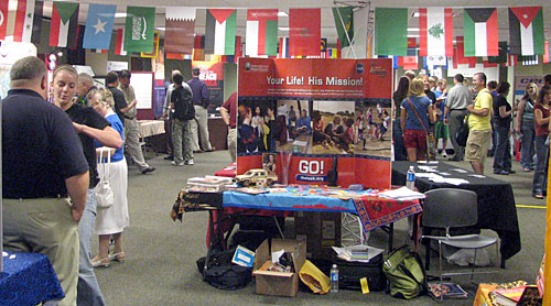 Global Missions Conference Global VillageThe missionaries and their organizations were displayed in the global village throughout the week to give students an opportunity to talk with and receive information from the missionaries about working in the mission field.