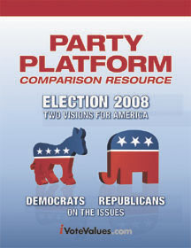 The quadrennial Party Platform Comparison Guide, which covers a wide range of issues, pulls selected excerpts from both the Democratic and Republican party platforms on such issues as civil rights, human trafficking, illegal immigration, judicial appointments and stem cell research, among others.