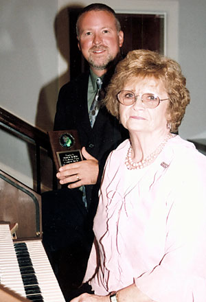 Louise Chastain was honored by Clearview Baptist Church, Travelers Rest, where she has been organist for 47 years. She is a member of the Mission Minded Sunday School Class, the senior adult program and the prayer chain. Presenting a plaque of recognition is Travis Burns, worship and outreach pastor.