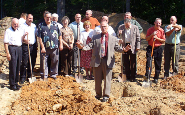 Pastor Dennis Willoughby, the grounds committee and other members of First Baptist Church, Blackstock, celebrated the groundbreaking Oct. 5 for a new social hall and kitchen.