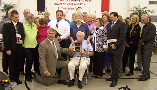 During a special ordination service Oct. 12, Mechanicsville Baptist Church, Darlington, ordained two new deacons, Earl Marshall and Allen Reynolds, and a deacon yoke-fellow, Jacob Heatherly. Autry Graham, seated, was also presented a deacon emeritus plaque honoring his long service as a deacon.