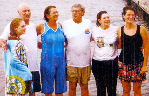 Meadowbrook Baptist Church, Beaufort, celebrated the baptism of five new members. With pastor Ed Morgan, third from right, are (from left) Holly Carslake, Don Smith, Denise Smith, Marti Myers and Ashley Walker.