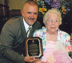 Pauline Owings was honored by Bellview Baptist Church, Woodruff. Owings has taught in the Sunday school department for more than 53 years. She has taught in every age group from nursery through senior adults. With Owings is pastor Ray Mims.