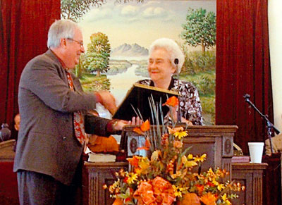 Hulon Baptist Church, Batesburg, celebrated its 60th homecoming Oct. 12 with an attendance of 265 people. Pastor Larry Patterson presented Jeanette Kyzer a certificate, recognizing her for 60 years of service to Hulon as the only surviving charter member. Speaker Valerie Rumbough, vice president of finance for the Baptist Foundation, shared that during Hulon’s 60 years, members have given more than $500,000 to missions through the Cooperative Program and Lexington Baptist Association.
