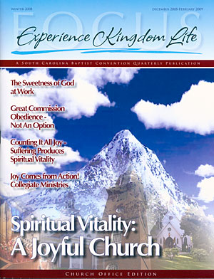The magazine will help churches learn what it means to Experience Kingdom Life, a new five-year spiritual focus adopted by SCBC messengers at the 2008 annual meeting of the South Carolina Baptist Convention Nov. 11-12. Experience Kingdom Life will build upon the foundation established in the last 15 years, Empowering Kingdom Growth.