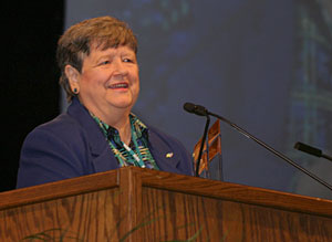 The Executive Board of the South Carolina Baptist Convention recognized retiring Woman’s Missionary Union executive director-treasurer Evelyn Blount during the annual meeting of the SCBC. Executive Board chairman Tom Swilley said the convention has enjoyed its partnership with WMU since Blount accepted the leadership role in 1985. “We have experienced an unparalleled relationship thanks to her exceptional leadership,” Swilley said. Swilley presented Blount with a sculpture to commemorate her service. Blount called her experience a “joyous journey” and her relationship with the SCBC a “true partnership.” Blount will be retiring at the end of this year. Laurie Register, Women on Mission associate, will assume the role of WMU executive director-treasurer in January 2009.