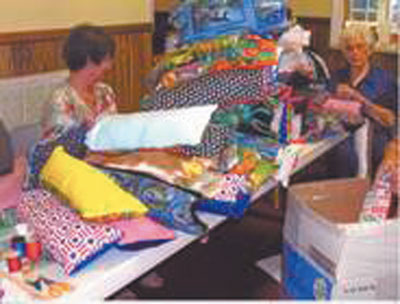A “pillow ministry” is among the many missions projects of Mountain Springs Baptist Church, Piedmont. Jean Talbot, a member of Mountain Springs, began making lap pillows to give to fellow cancer patients as a sign of encouragement. The project has grown, and the women of Mountain Springs have made more than 220 pillows for the veterans at Richard Campbell’s Veterans Home in Anderson. Below, several of the participants are making pillows which will be given to the residents of Riverside Nursing Center in Piedmont for Christmas. “Each pillow is filled with hope, faith, love and prayers,” says Talbot.