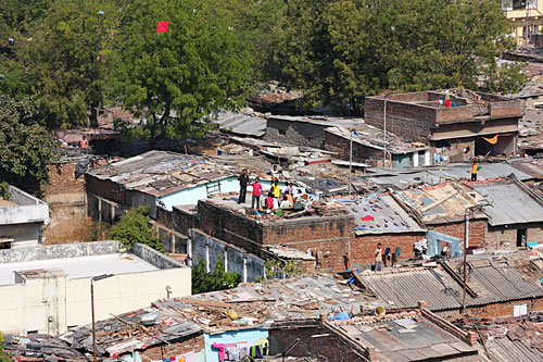 Indian youths fly their kites from rooftops.
