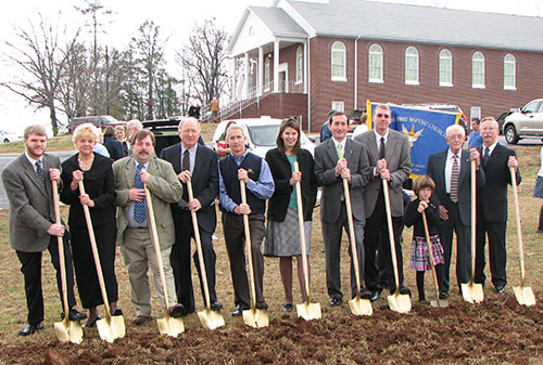 Members of First Baptist Church, Norris, led by pastor Royce Addis and members of the building-steering committee, participated in groundbreaking ceremonies Jan. 11 for the construction of a multipurpose gymnasium. Following a worship service that focused on “Rising to Build,” the congregation was led to the construction site by several Boy Scouts, who carried the flags of the country, state, faith and church. With shovels in hand, the members gathered around the freshly tilled perimeter of the building to commit the project to God’s glory. Led by a group consisting of the oldest and youngest church members, leaders, and representatives from First Citizens Bank and Durham-Greene Inc., one member of each family turned the ground that will be the foundation of the building.
