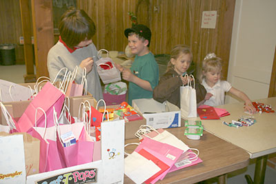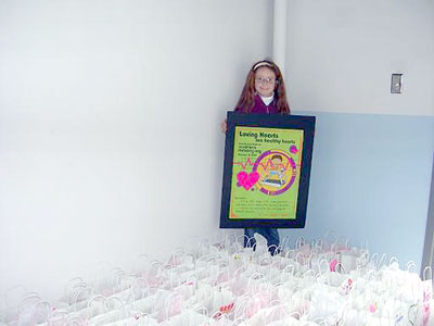 From top: The GAs, RAs and Mission Friends from First Baptist Church, Simpsonville (downtown and west campus) decorated more than 250 gift bags with words of encouragement and Valentine greetings. They donated gum, mints, M&Ms, sticky notes, tissue packs and pens to put into the bags as a thank-you gift for the staff at Hillcrest Hospital. Representatives from each of these organizations, along with Annie Ruth Yelton, minister to children, delivered the bags Feb 14. At each station, a brief prayer was said for the people who worked in that area. GA Megan Carpenter is shown standing with the gift bags.