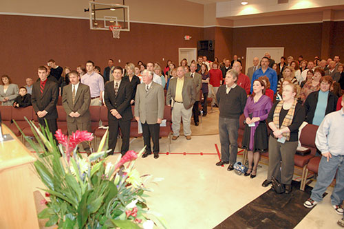 Pleasant Dale Baptist Church, Lancaster, dedicated its family life center Feb. 1. The 15,188-square-foot facility consists of a kitchen, work-out rooms, showers, gym, fellowship hall, youth center and a multi-purpose room that will serve as the interim worship center. Dale Roach, associational missionary for Moriah Baptist Association, was guest speaker. Jack Nunn has been senior pastor of Pleasant Dale since July 1998. The church has 317 active members.