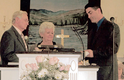 Carl and Mary Rogers were honored Feb. 22 when Carl retired after 50 years as a minister of music. Shannon Gault, right, chairman of deacons at Pacolet First Baptist Church, presents the couple with a gift from the church.In addition to Pacolet First Baptist, Rogers served nine other churches in the Spartanburg area during his ministry.
