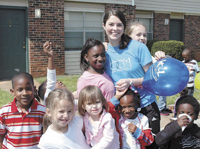 Liz Walker and other Anderson University students have developed a strong relationship with children at the Fairview Gardens Apartments in Anderson.Every Tuesday afternoon, about 25 students go to the apartment complex for a backyard Bible club, where they play games, have Bible study, and spend quality time with the children and their parents. On Sundays, the students return to the apartments to transport the children to church services.