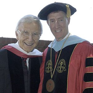 Thomas Haggai, left, with NGU president Jimmy Epting.Haggai, a 1949 North Greenville alumnus and chairman/CEO of IGA Global supermarket chain, was the keynote speaker.